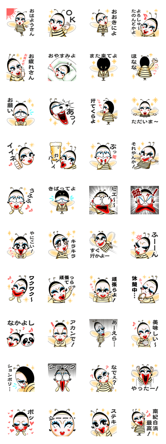 南紀白浜で有名な『ひろミツバチ』さんのスタンプ。 紀州弁で登場です!