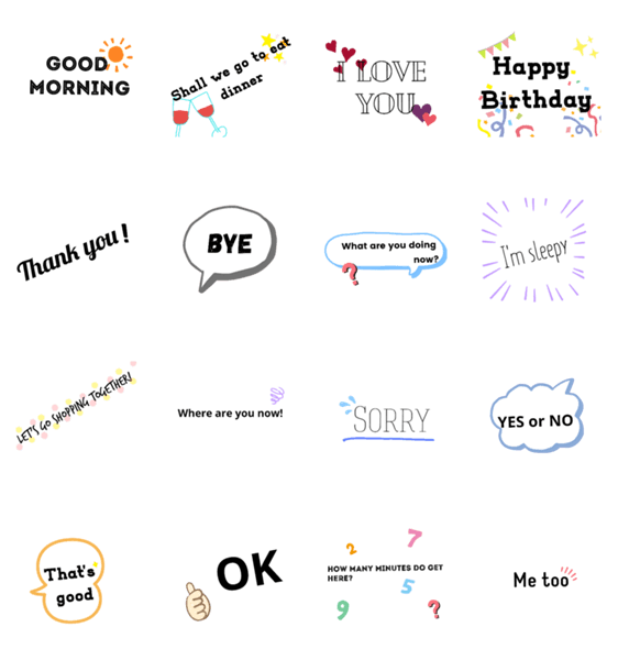 英語で簡単な挨拶や質問などをスタンプにしました。良かったら、使ってください。