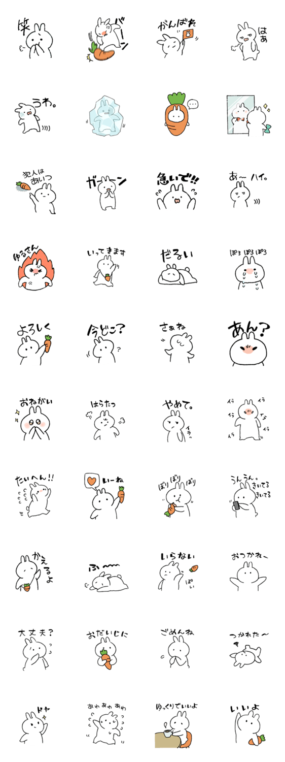うさぎときどきにんじんのスタンプにこめ すこし表情豊かになりました