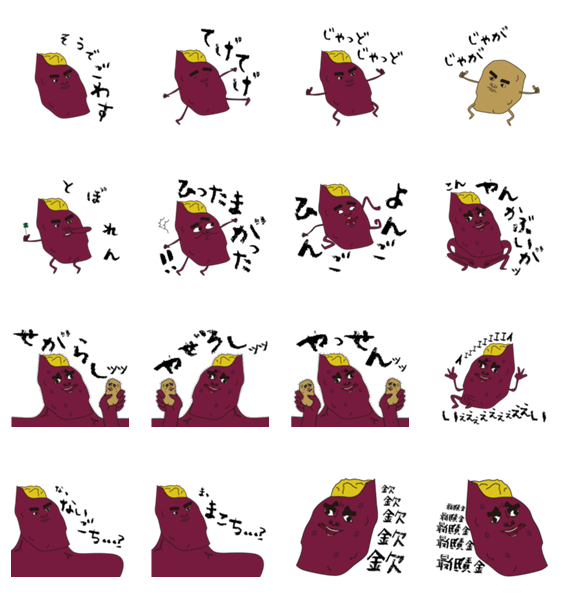 かごんまのスタンプやっど。荒ぶるさつまいもやっど。つこてみっくいやい!