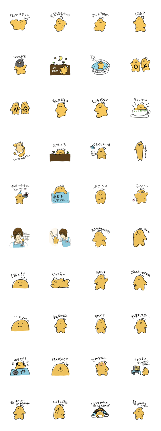 | スタンプ説明 | しょうが君です。たまにしょうがさんにもなっちゃいますが、なにかしらに使えると思います。あと、効能は色々とあっためてあげられます。。。 |