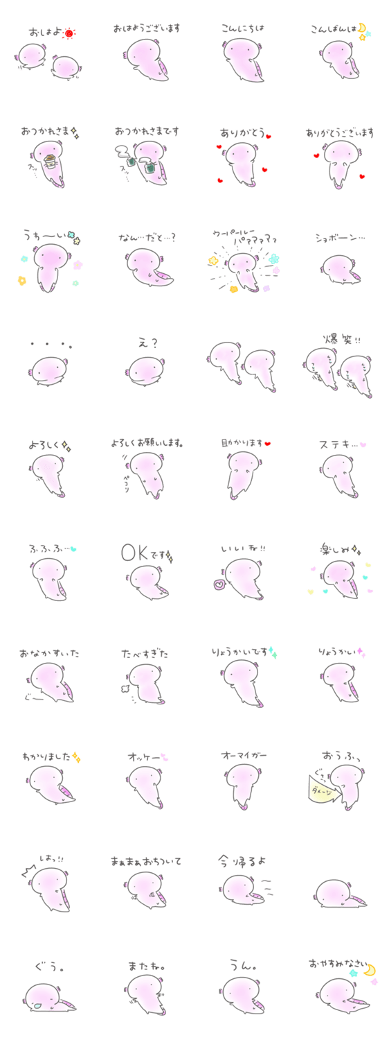 ウーパールーパーの毎日使いやすい日常会話、敬語のシンプルな絵文字です。