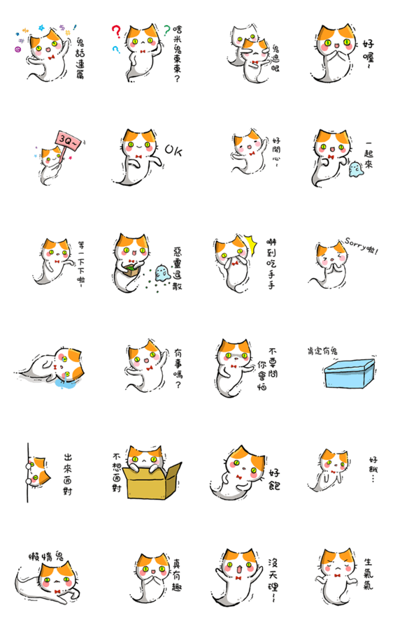 | スタンプ説明 | The ghost little cat is without a trace, floating and soft, let the ghost little cat accompany you to chat with friends! |