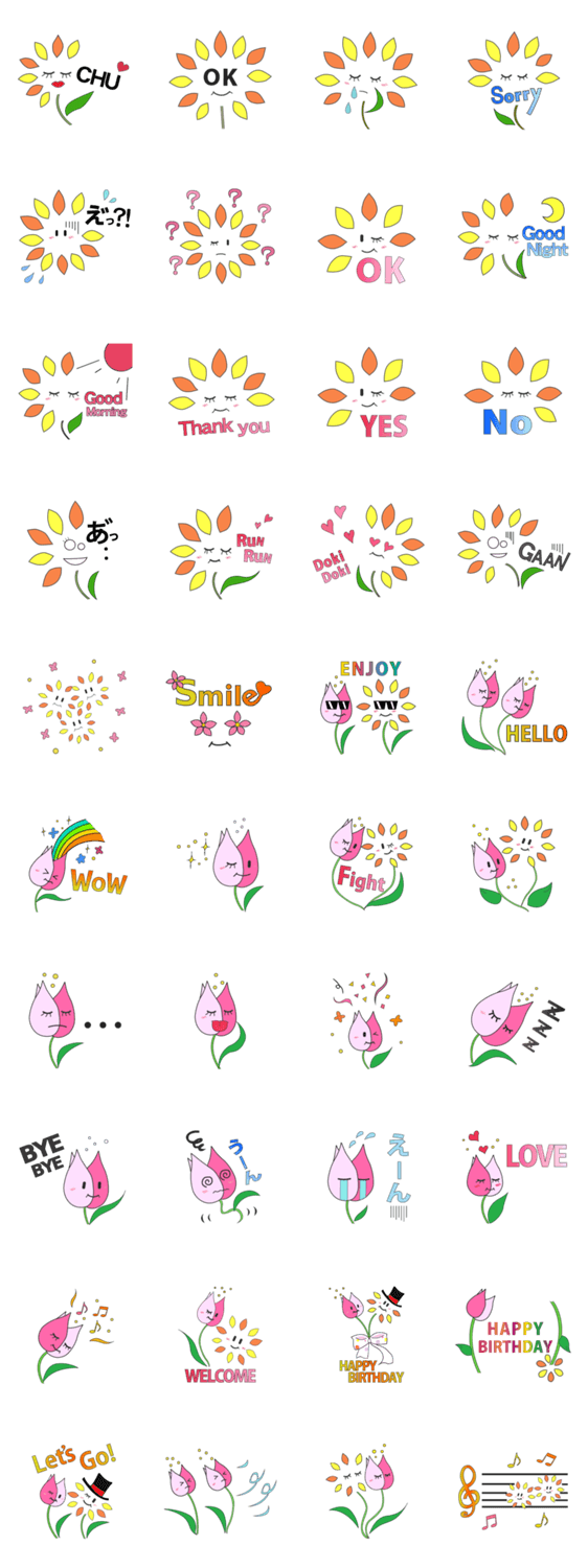 | スタンプ説明 | マーガレットとチューリップのおちゃめな日常。第1弾。お花たちのスタンプで幸せを届けよう!! |