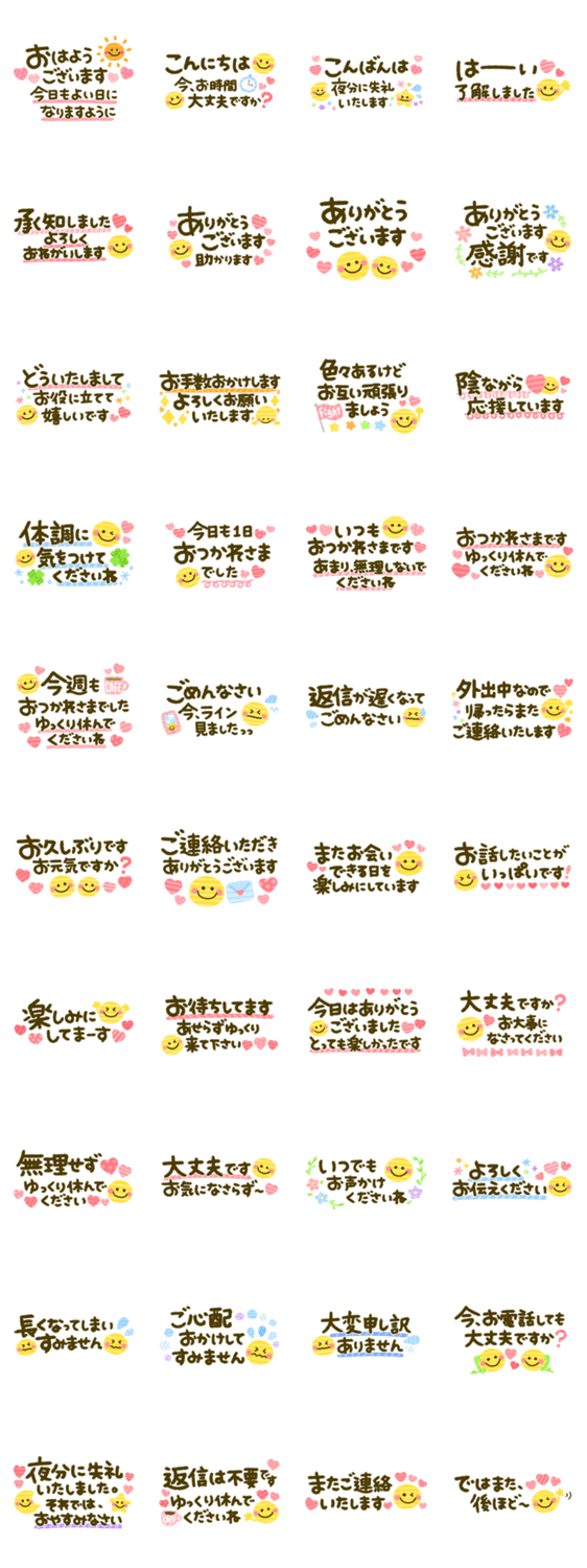 スマイルいっぱい♡カラフルで可愛い大人の丁寧な思いやりことばスタンプです♡敬語もいっぱい♡