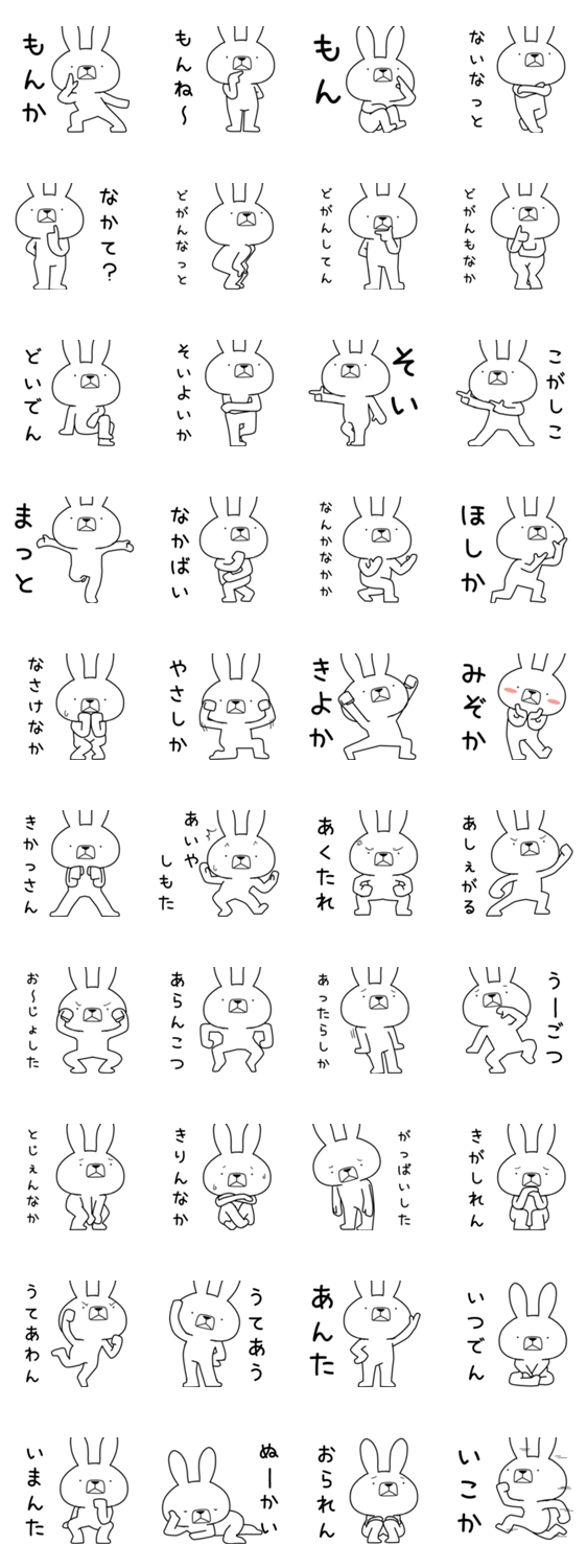 いろんな方言をつかううさぎのスタンプ諫早弁編3(長崎・熊本・佐賀・福岡。また違う県verに似た方言が見つかるかも)