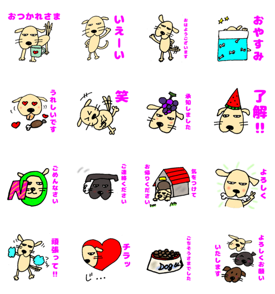 お仕事にも使える日常会話をゆるく描いたラブラドールのスタンプです