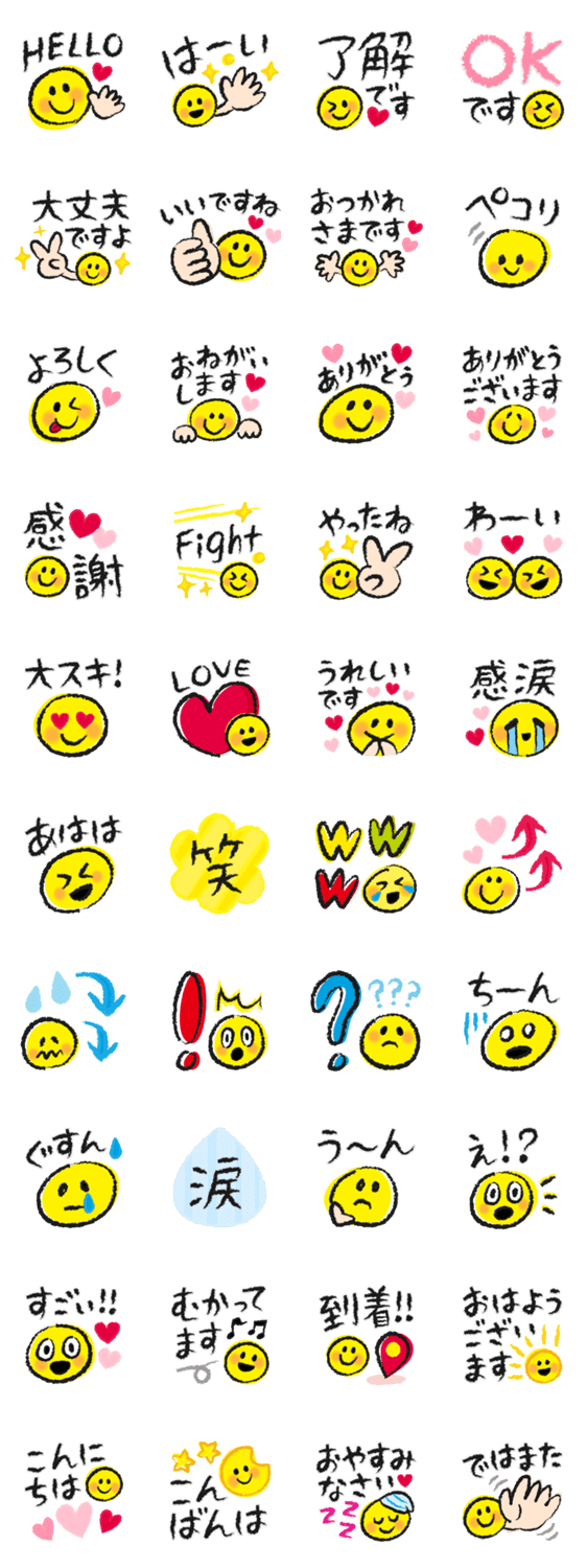毎日使えるカジュアルな敬語スタンプ。クレヨン調のかわいい手描きスマイルです!