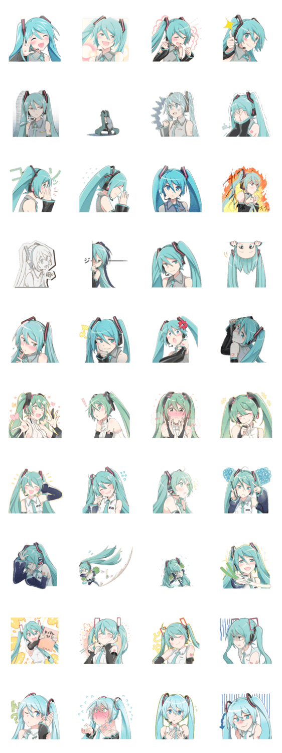 色んな場面で使いやすい初音ミクさんのスタンプです!(V2,append,V3,V4X,V4C)
