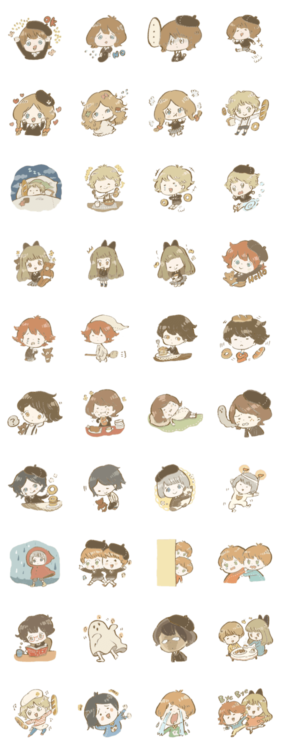 まつうらあいのオリジナルキャラクター「Applegarthのこどもたち」がスタンプになりました。仲良しでで少し不思議なこどもたちと楽しくおはなししませんか?