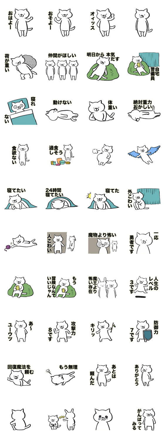 白ネコのあいうえお・・・ってるスタンプ