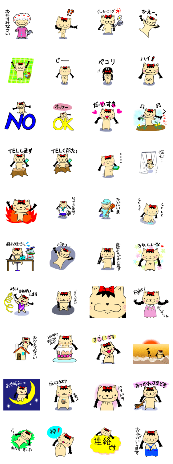 良く使うスタンプおさげニャンコ編 -LINEスタンプマニア