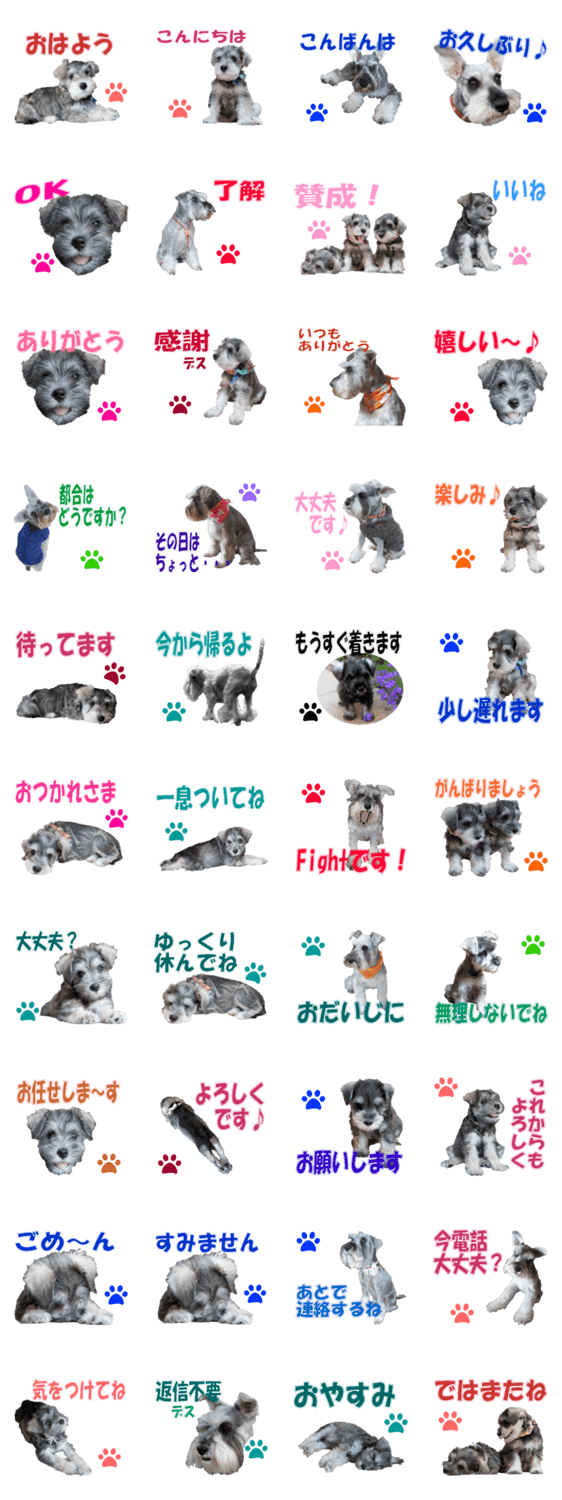 | スタンプ説明 | シュナウザーの写真とお友達との日常挨拶をシンプルに入れています。 |