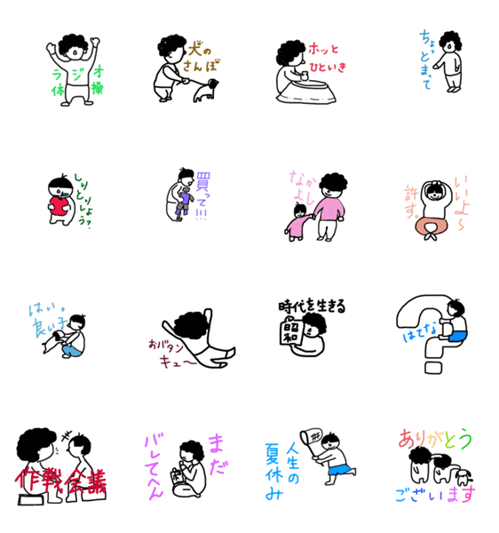 のんびり、まったりしているように見えてちょっとシュールなものもある。そんな面白おかしいスタンプです。
