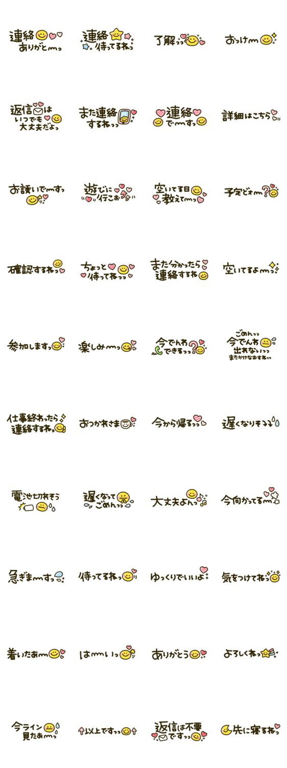 家族やお友達、親しい人へ送るシンプルでかわいい文字メインの連絡スタンプです♪