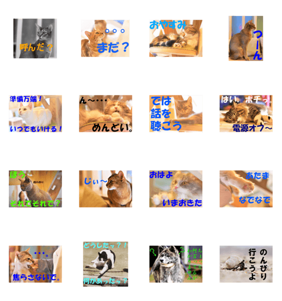 撮影した動物写真を使ったスタンプです。ネコが多めです!