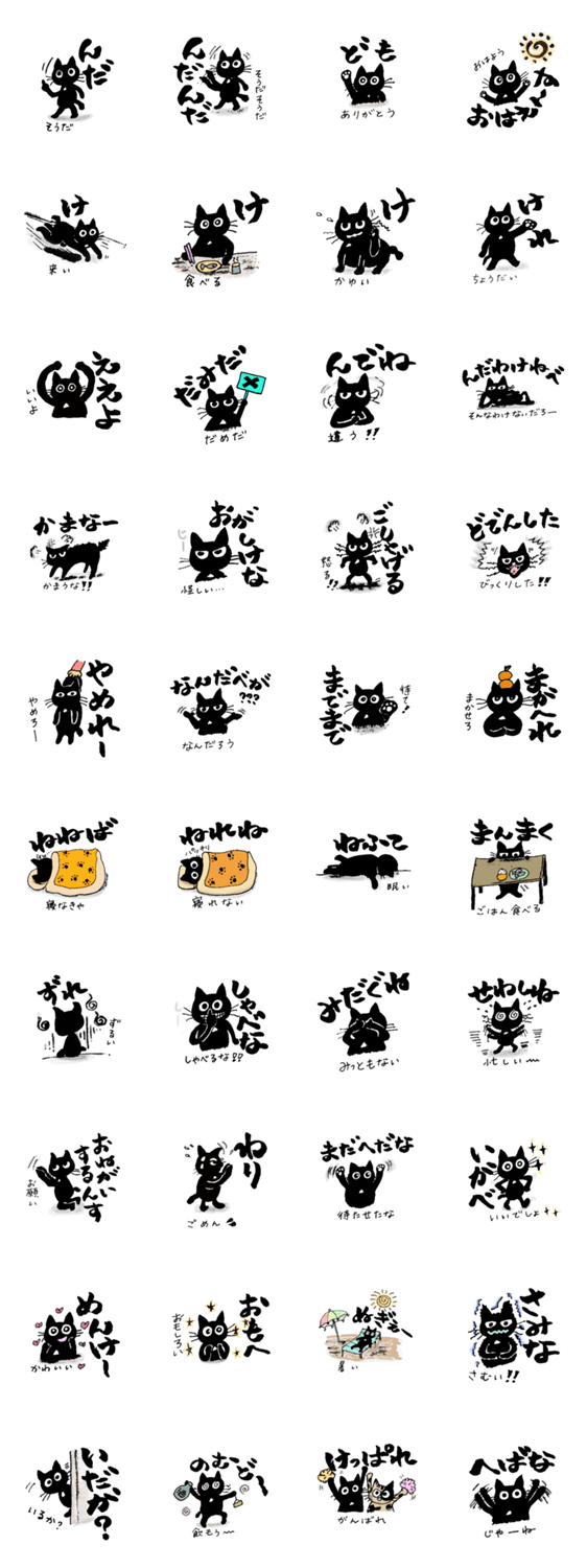 | スタンプ説明 | 秋田の方言を標準語まじえ黒猫クーちゃんがジェスチャー付きで教えてくれます。 |