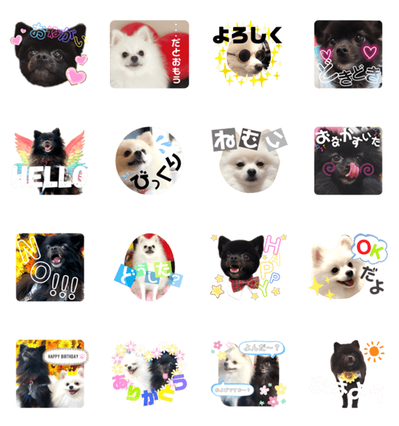 スタンプ説明 我が家の黒ポメちゃんとポメチワくんのオセロコンビ