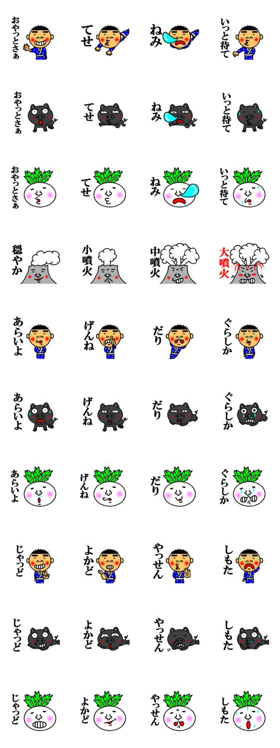 鹿児島のシンボルをモチーフにした日常会話に使えるゆるいスタンプです。