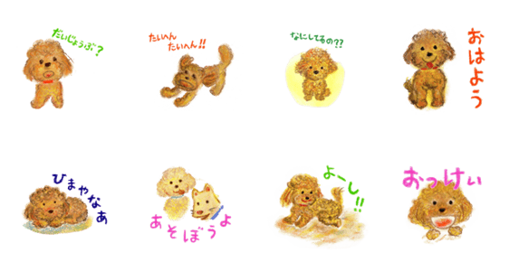 トイプードルのあんずとその仲間たちによる、毎日使えるスタンプです。