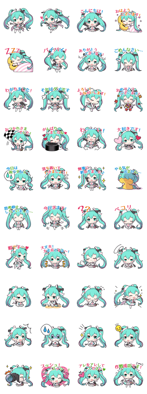 | スタンプ説明 | 初音ミク GTプロジェクト専用キャラクター「レーシングミク 2019Ver.」がLINEに登場!レーシングミクのキュートな表情やレースならではのスタンプにも注目! |