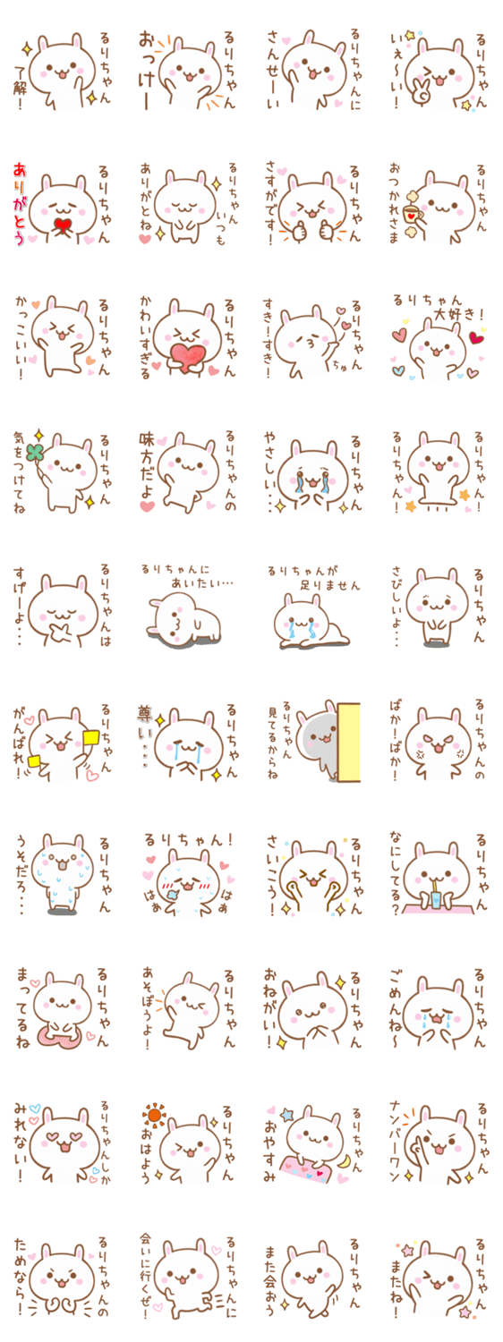 大切な「るりちゃん」へ送れる、ウサギのあだ名・名前スタンプです。るり/ルリ/瑠梨/瑠璃/瑠梨/琉璃/瑠利/留梨/る里/瑠里/瑠莉/ruri/るりこ/るりえ