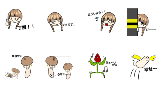 みつあみの子と、いろんな妖精さんのスタンプです(*´˘`*)