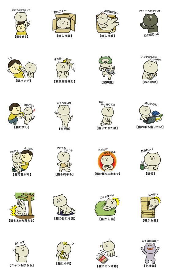 ネコにまつわる慣用句やことわざなどをスタンプにしました。 (ネコではない言葉もありますが)