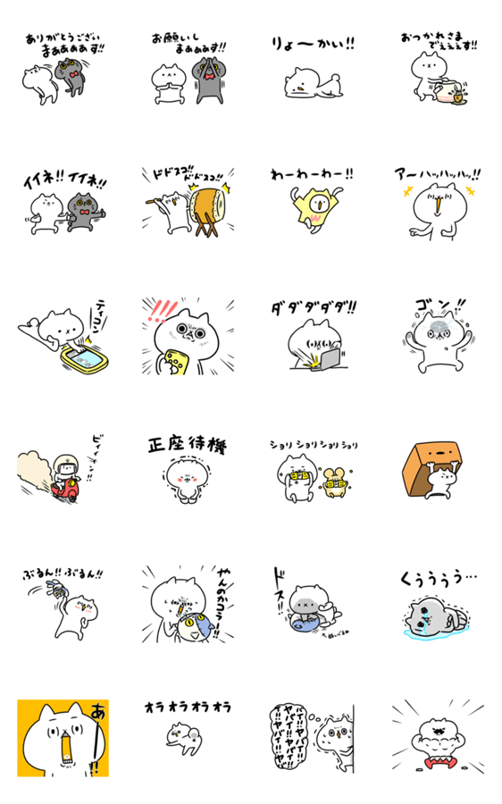 白ネコのあいうえお・・・ってるスタンプ