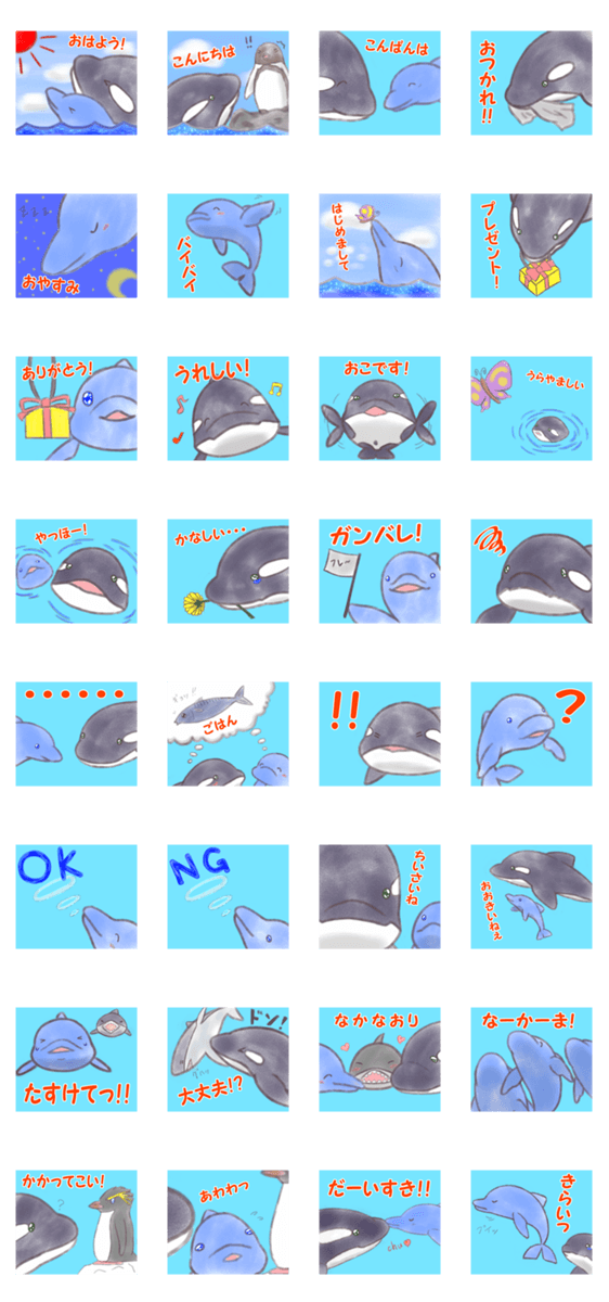 可愛らしい海の生き物たちがスタンプになりました! イルカやシャチと一緒に楽しい毎日にしちゃいましょう~!