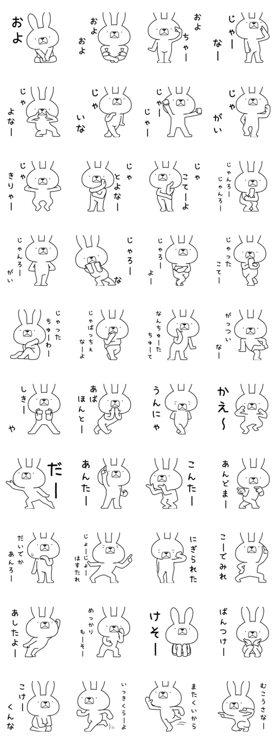 いろんな方言をつかううさぎのスタンプ種子島弁編3(鹿児島・九州地方、そうでない方も使えるかも。また違う県verに似た方言が見つかるかも)