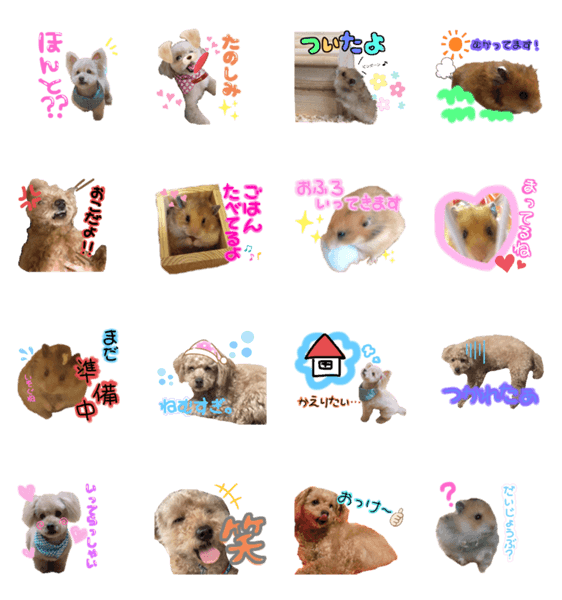 ゴールデンハムスターのアナとトイプードルのレイの日常で使えるスタンプです❀(*´▽`*)♡❀
