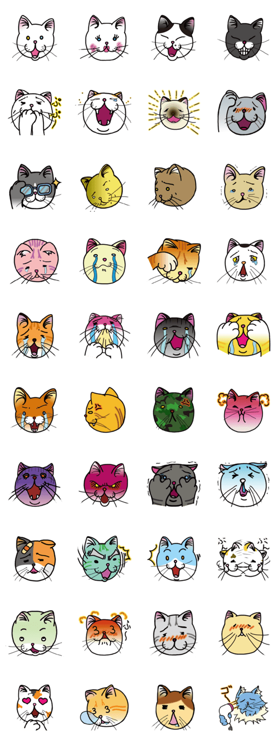 | スタンプ説明 | Vol.1は、小方大樹(おがたひろき)が描く様々な表情の猫達を用意しました。 |