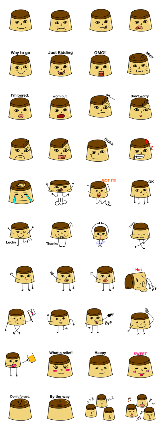 表情豊かで、ゆるーいプリン達。使える英語のフレーズで、日々役立ちます!