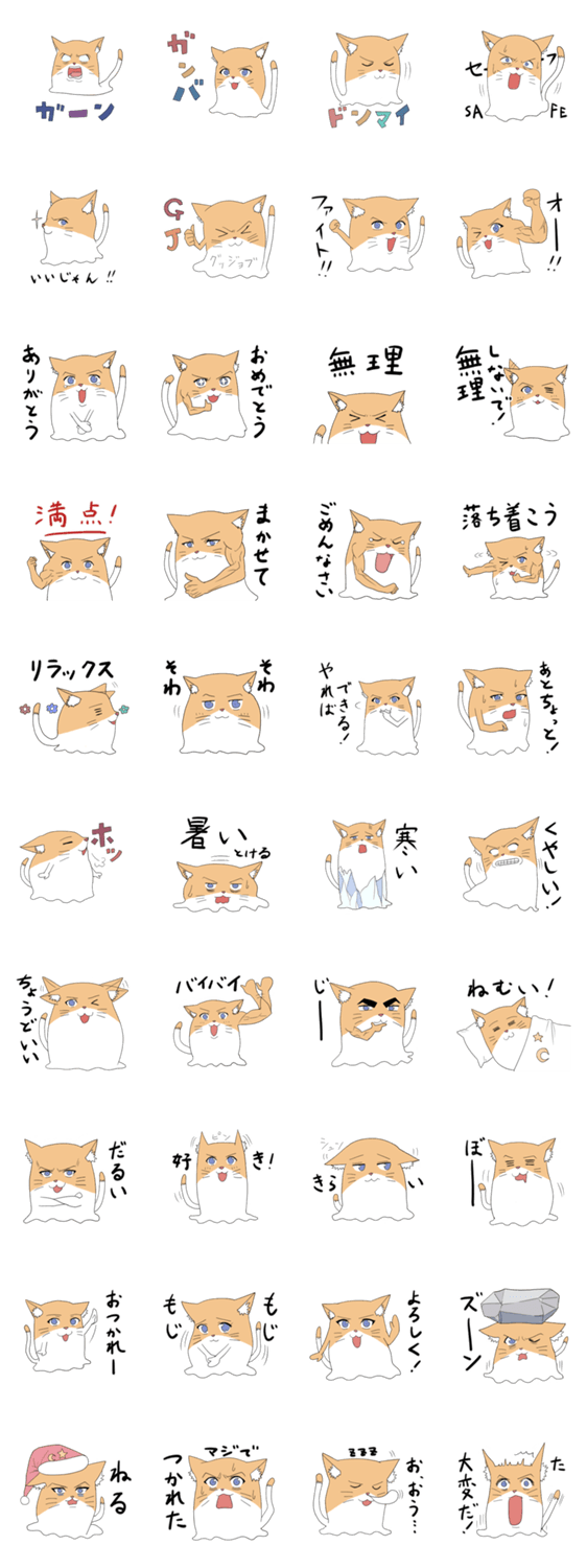| スタンプ説明 | やわらかい猫型スライムのニャンスが喜怒哀楽を表現します。是非使ってください。 |