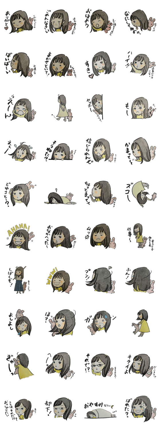 女の子とうさぎ 色鉛筆 -LINEスタンプマニア