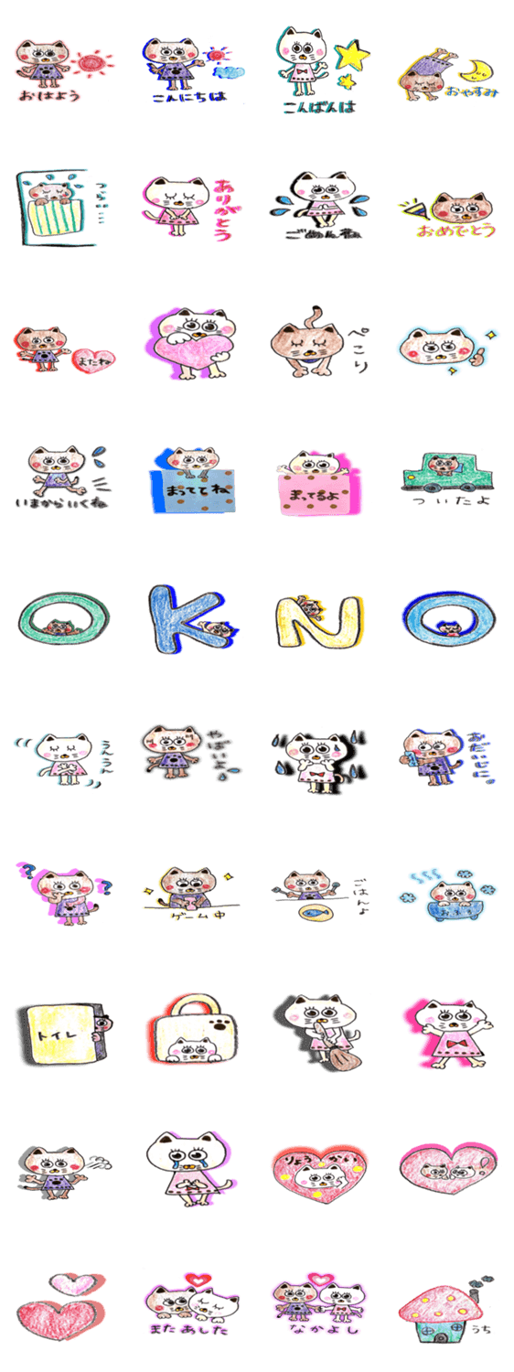 スタンプ説明 ねこのみいちゃんともんちゃんの日常スタンプです。