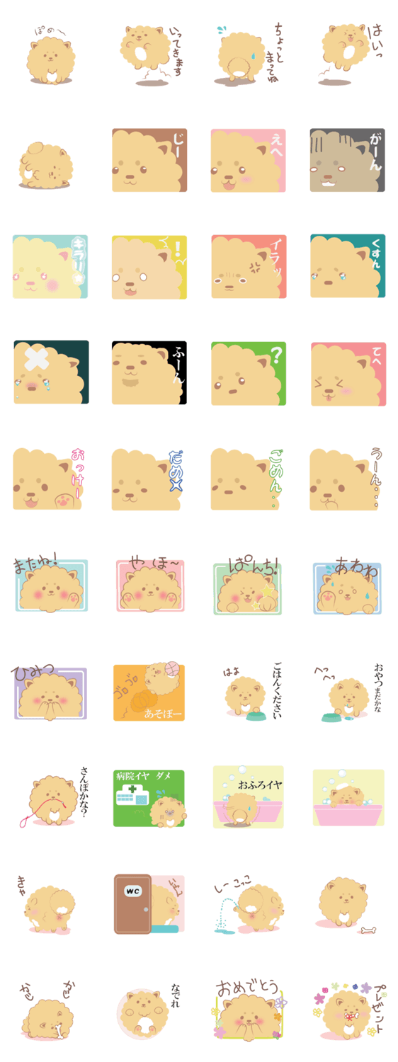丸いふわふわもこもこポメラニアンがくるくる転がりそうなスタンプです。