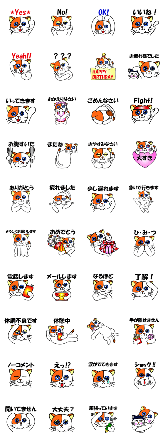 青い目をしたかわいいみけ猫さんがあなたの気持ちを伝えます。