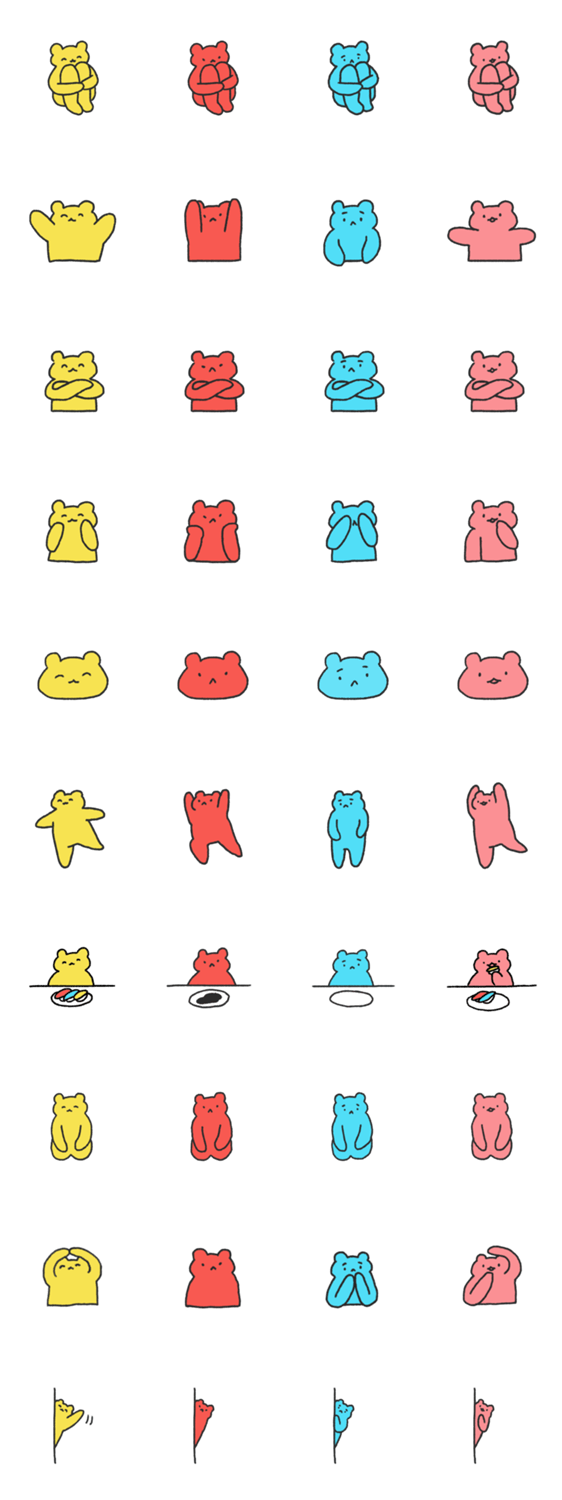 エモーショナルなクマたちのにぎやかなスタンプです。
