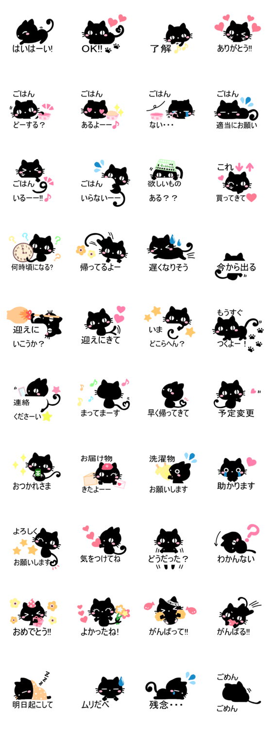家族専用(夫婦、家族)で使える大人かわいいくろ猫のふきだしスタンプ!毎日使えてとっても便利なネコ!文字サイズは見やすいデカ文字だよ♡ぽぽんのスタンプ第44段♡
