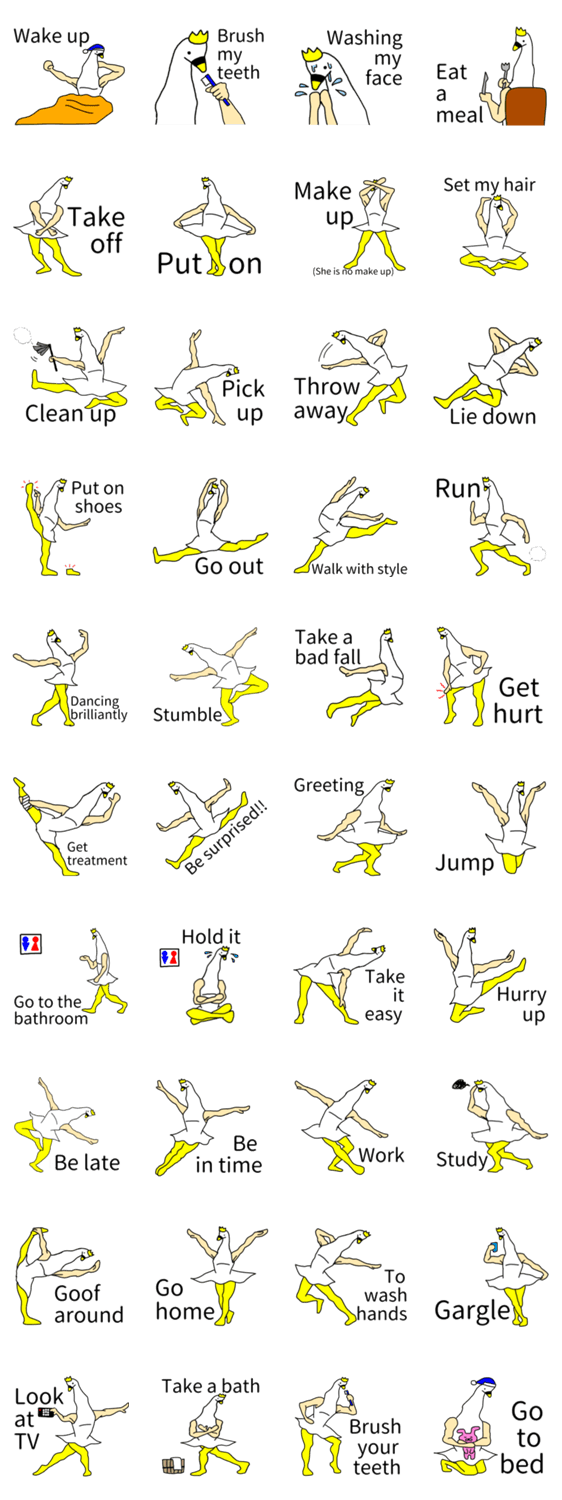 華麗なるスワン6(英語の日常動作) -LINEスタンプマニア
