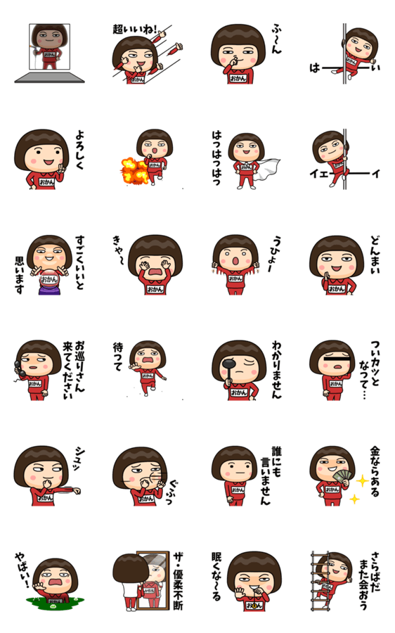 おかんが使う芋ジャージの名前スタンプ第5弾!ポールダンスはみんなで連投すると楽しさ倍増♪爆破や沼で溺れる激しい動きもスタント無しでオカン本人が演じています!