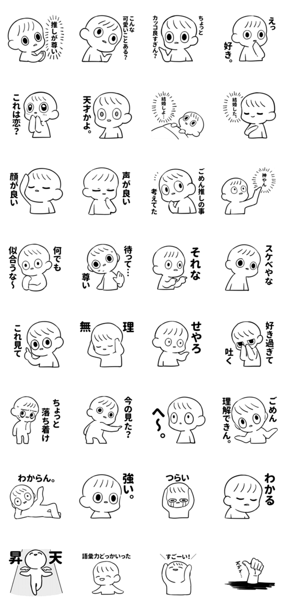 推しが好きすぎて語彙力が無くなるオタクのスタンプ作りました。