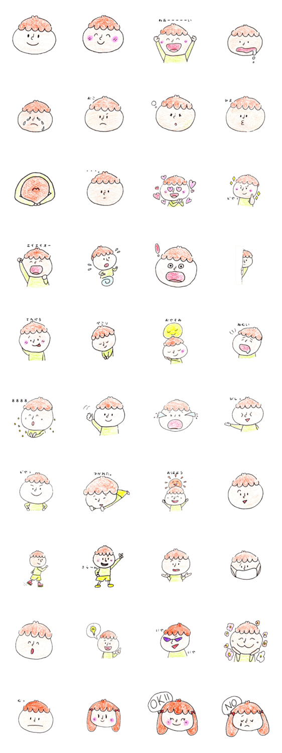 表情豊かな男の子。クレヨンでほんわか描きました。会話の合間にどーぞ。