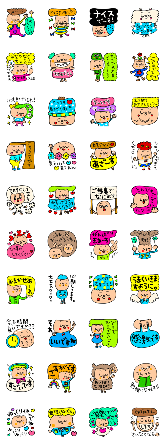 お気遣いのセリフのセット。かわいいものからシュールなものまで。
