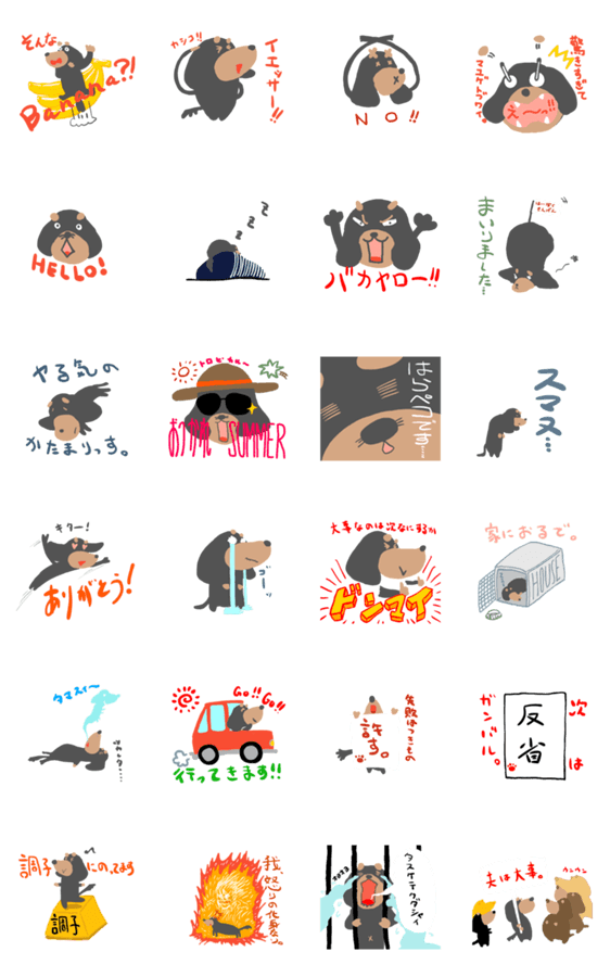 | スタンプ説明 | ミニチュアダックスフントのダイズくんのスタンプです。シニア犬の感情豊かな表情をどうぞ! |