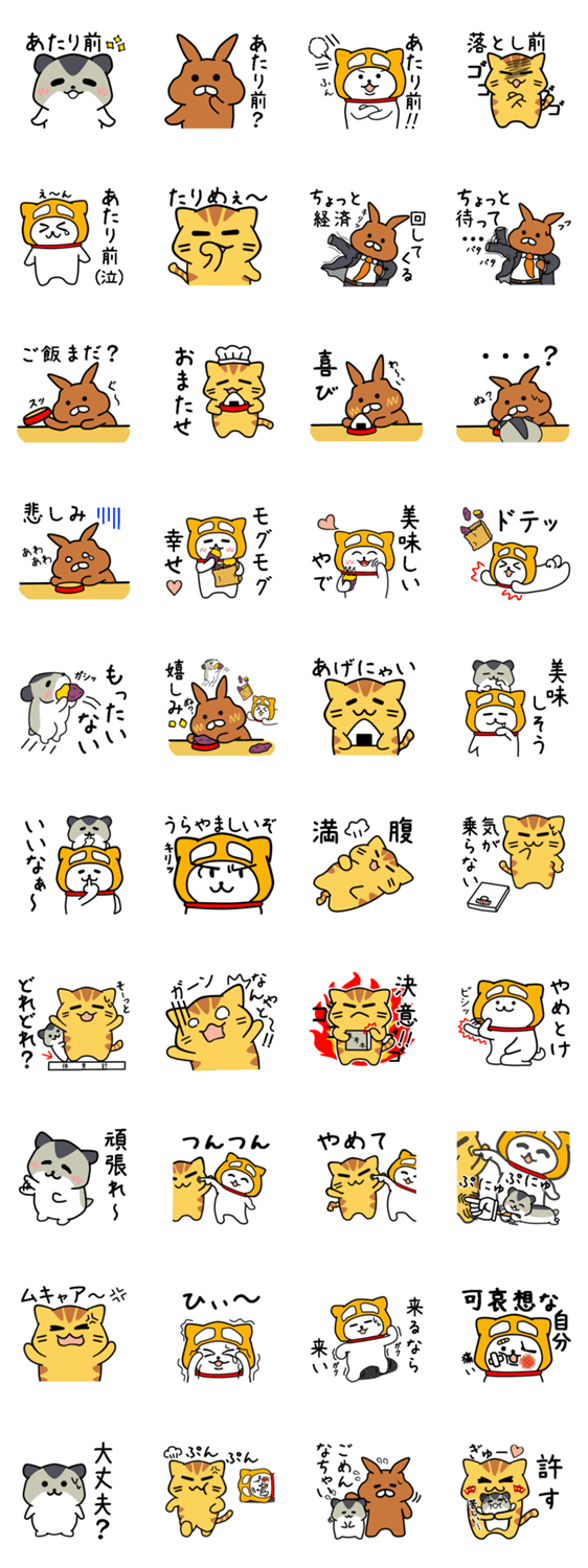 ハムスターのピンちゃんと、ウサギのチェスター、柴犬もどきのタロとネコのミーコたち4匹のシュールでゆるく描いたスタンプ第2弾です。