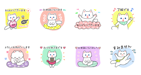 大人女子が日常使いやすい、優しいかわいい敬語スタンプ。お世話になりました。お疲れ様です。など、まわりの人への気遣いを忘れないおりこう白猫【もっちゃん】です。