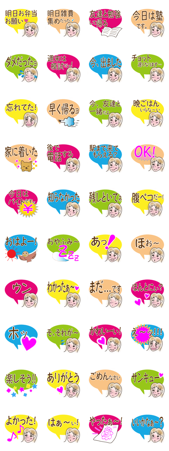 高校生や大学生の女の子が、ママや家族に送るメッセージです。文字が大きくて、ナイスミドルのママの目に読みやすいよ。